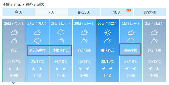 今天下午到明天白天,多云,有雾或轻雾;东北风转南风,沿海及内陆3~4级;最高气温,沿海25℃,内陆27℃,最低气温,沿海17℃,内陆15℃。