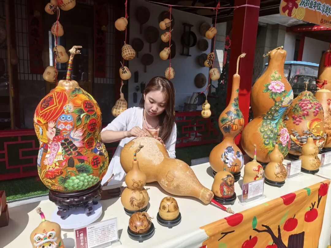 9月23日,第八个中国农民丰收节全国主场活动在金岭镇大户陈家村举办!龙口粉丝传统制作技艺、胶东传统编结技艺(招远)、成文堂葫芦画、招远绒绣、招远剪纸、招远花饽饽习俗六大非遗项目齐聚一堂,以千年传承的匠心与现代创意献礼丰收,为游客献上一场“可观、可品、可带走”的非遗文化盛宴,让丰收的喜悦在指尖与舌尖流淌!