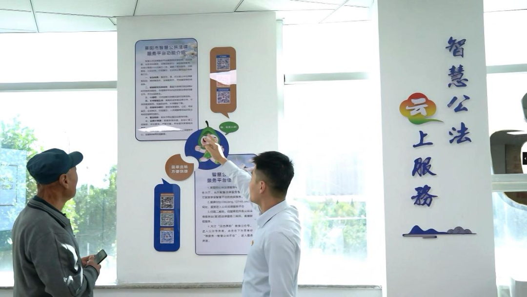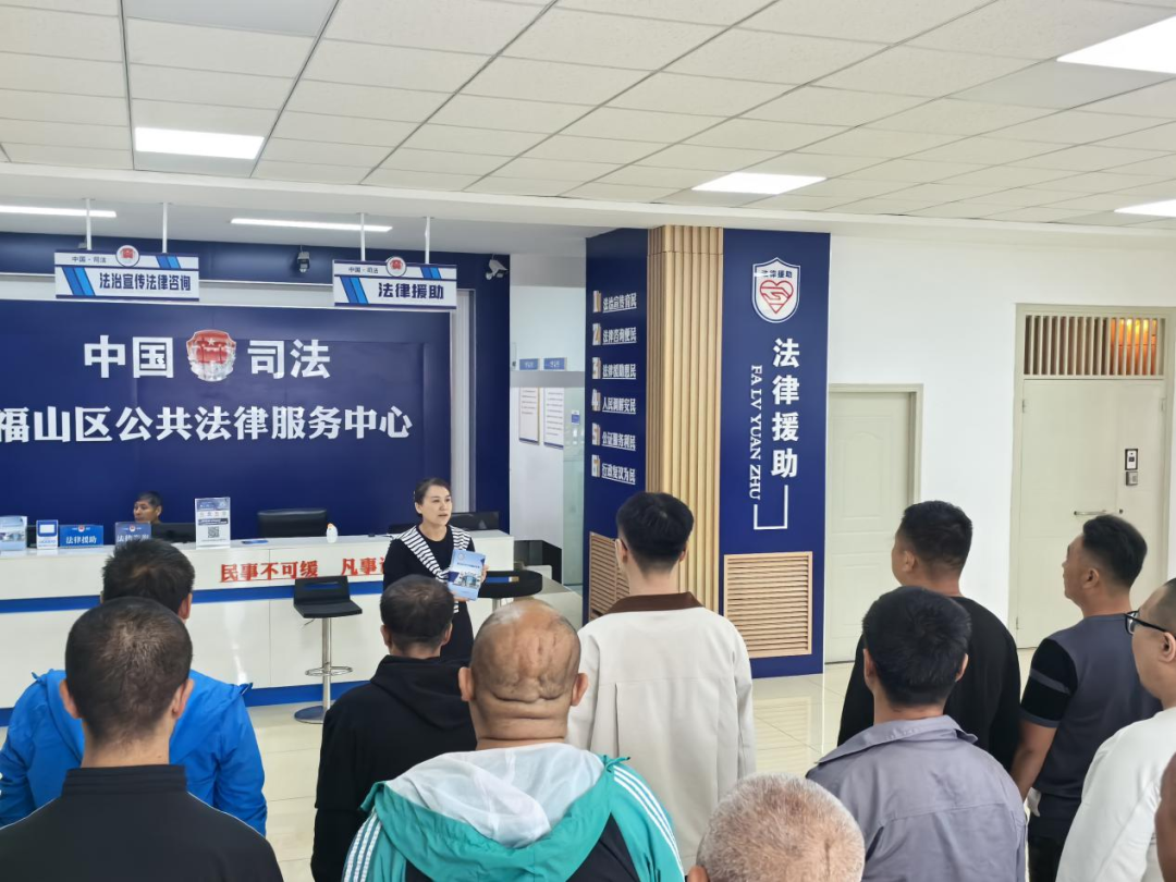 福山区邀请群众代表参观福山区公共法律服务中各功能区域,听取成果介绍并观看宣传片,工作人员现场演示“AI福山”公共法律服务微平台的操作流程,发放《福山区公共法律服务手册》。