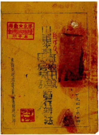 《山东省征收田赋暂行办法》 东海区行政专员公署财政科印 1941年6月