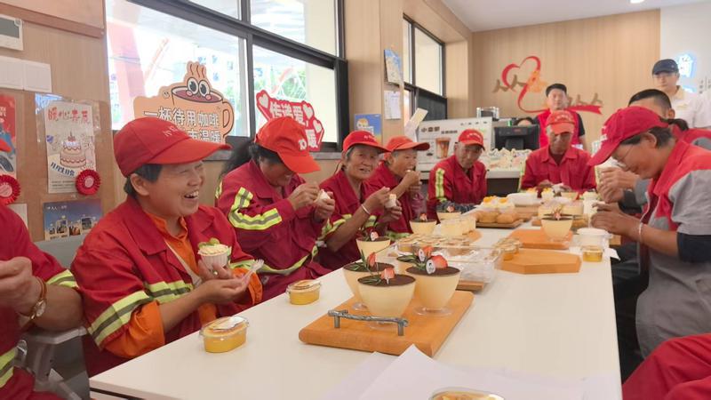 活动现场欢声笑语不断,环卫工人们一边品尝精致甜品,一边欣赏精彩节目,脸上洋溢着轻松愉悦的笑容。慈善义工们献上了一场丰富多彩的文艺演出,歌声动人,朗诵深情,尤其是极具地方特色的节目《八仙回海》,赢得阵阵掌声,让平日里忙碌的“城市美容师”在节日氛围中尽情放松。