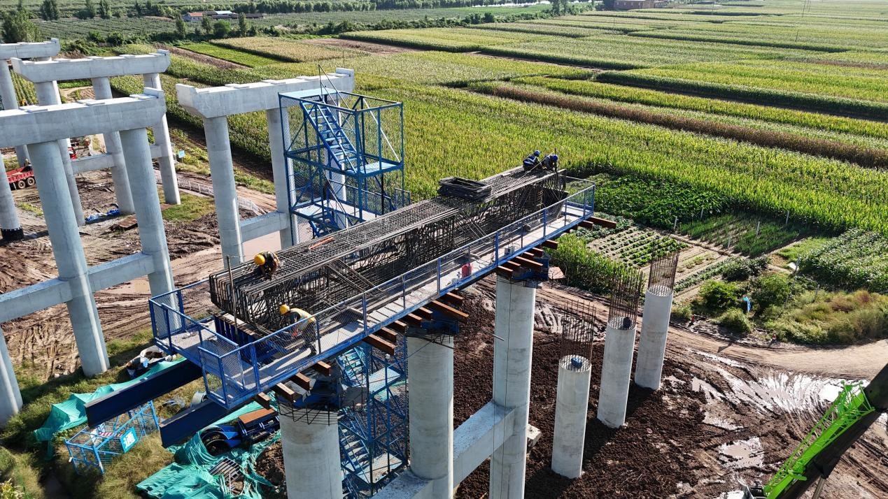 在G204烟沪线莱阳段改建工程现场各类作业有序进行。“国庆假期对公路人而言意味着更重的责任与更坚定的坚守。假期期间项目全体人员不放假、不休息,抢时间、保进度,坚持现场领导包保,分工负责,及时解决施工各种问题,争分夺秒推进项目建设。”莱阳公路中心副主任李文学介绍道。目前正在开展上跨青荣城际、蓝烟铁路公铁立交墩柱、盖梁施工,作为该项目的节点性工程,自项目开工以来,已完成桩基184根,墩柱207根,预计本年度完成下部结构并开展箱梁吊装施工,2026年8月前完成除涉铁转体外的全部工程。