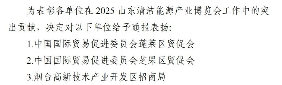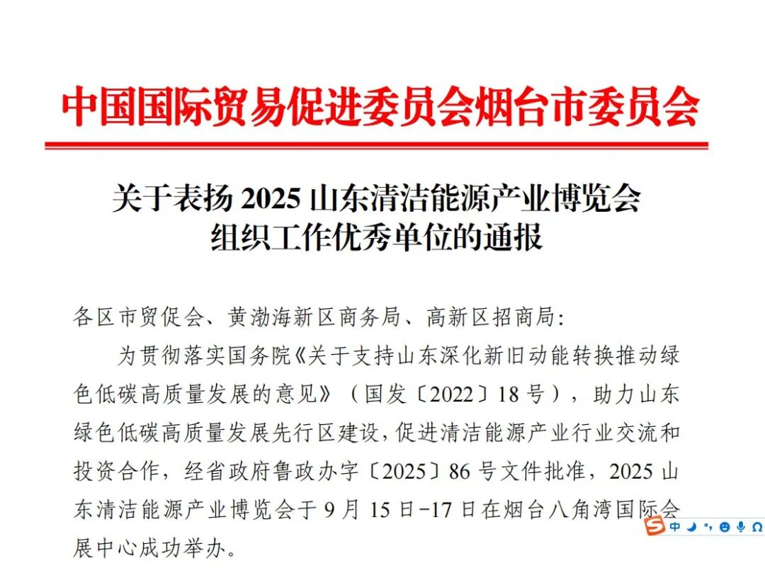 近日,“2025山东清洁能源产业博览会”在烟台八角湾国际会展中心成功举办。烟台高新区组织中集来福士海洋科技集团参展并取得良好成效,相关工作获得烟台市贸促会发文表扬。