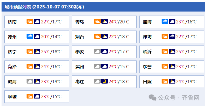 夜间最低气温:菏泽、鲁西北、鲁中山区和半岛内陆地区14℃左右,其他地区17℃左右。