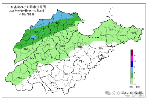 山东省气象台10月7日6时发布天气预报:预计未来一周我省仍多阴雨天气,7—9日降雨范围有所减小,鲁西北地区较明显;10—13日全省大部地区有较明显降雨。受较强冷空气影响,7日夜间到9日,各责任海区北风较强,继续发布海上大风黄色预警。