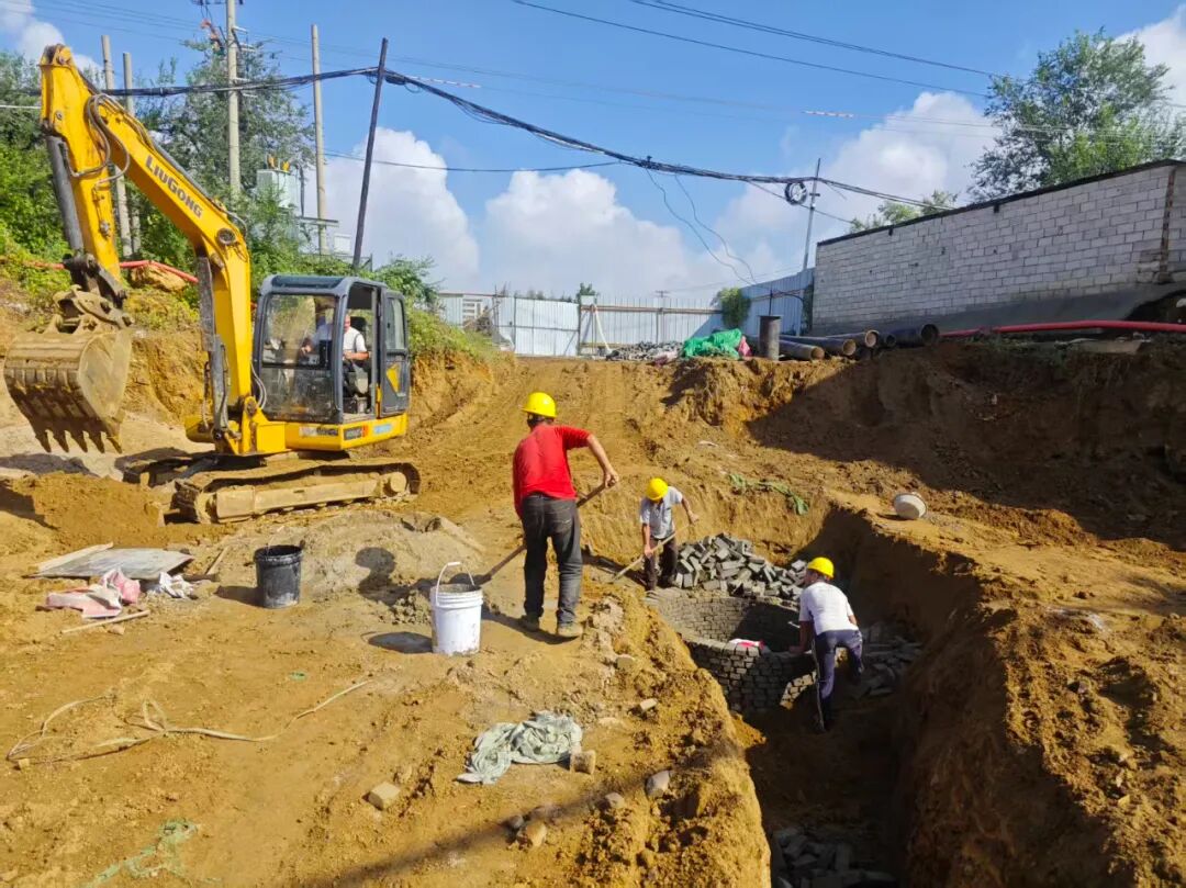 正全力推进供热管线管沟施工。为保障交通,已协调交警部门对天然气、暖气改造需破碎的局部路段调研封路方案。利用雨后时间投入两台挖掘机同步展开作业,全力抢工。