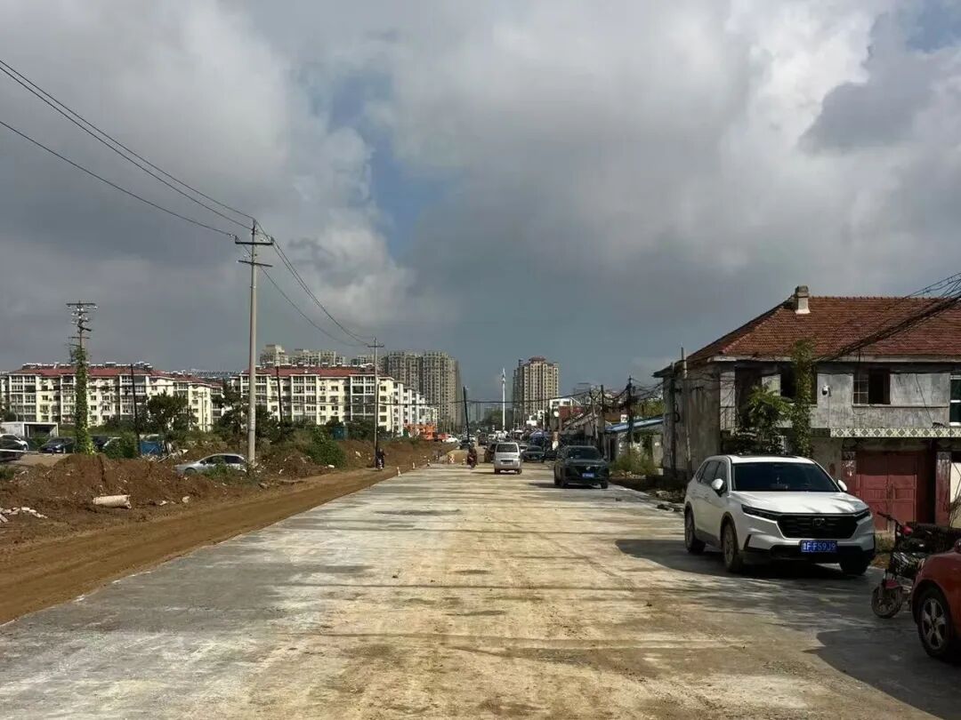 该路段人行道等所有附属设施均已完工。原定的沥青铺设计划因连续降雨暂缓,项目部正密切跟踪天气变化,待条件允许立即进行面层沥青摊铺,实现通车“最后一公里”。