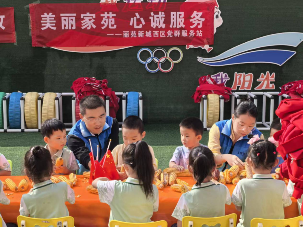 丽苑新城西区党群服务站携手辖区幼儿园,以“秋日丰收”为主题,开展了一场兼具童趣与教育意义的双节活动。孩子们在庄重的升旗仪式中唱响爱国歌曲,随后走进户外“丰收园”,亲手掰玉米、剥花生,体验劳动的快乐与丰收的喜悦。最后的“作物换月饼”环节,孩子们化身“小小运输员”,协作运送月饼,分享中秋味道,在互动中深刻理解了“团圆”“互助”与“分享”的意义,爱国情怀与传统文化在童心中悄然生根。