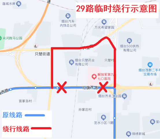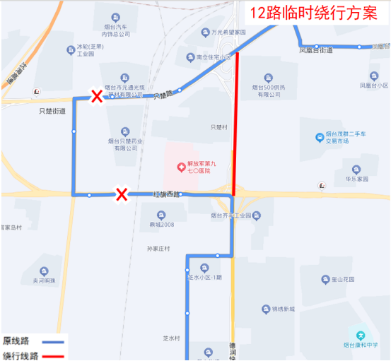 接相关部门通知,10月10日起,红旗西路(冰轮路至九七〇医院西侧路段)封闭施工,7路、12路、29路、30路、31路、33路、35路、37路、38路、76路、夜8路共11条线路临时绕行,具体方案如下: