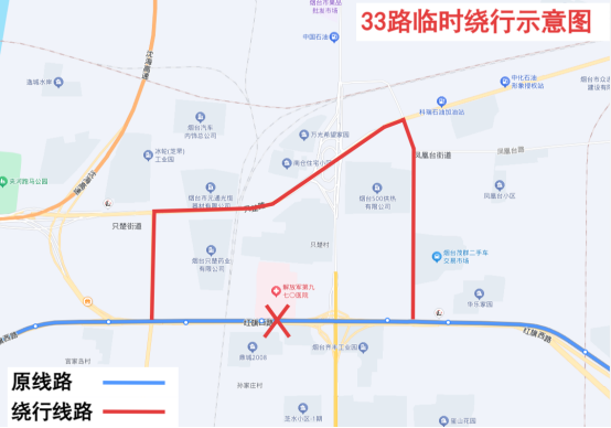 增加:只楚办事处、只楚路(冰轮路)、只楚集团(公交修理厂)、发电厂(胶东泌尿外科医院)、烟台茂群二手车交易市场站点。