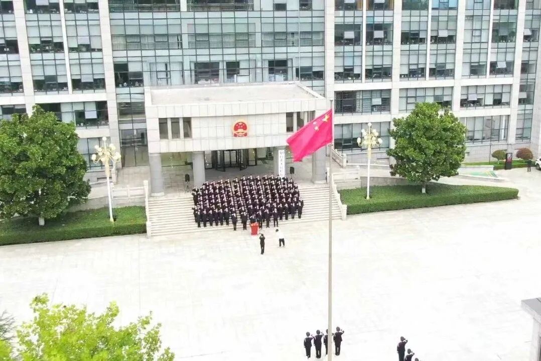 九时整,升旗仪式正式开始。由市检察院司法警察组成的国旗护卫队,迈着铿锵有力的步伐,护送国旗走向升旗台。全体干警庄严肃立,精神抖擞,面向国旗行注目礼,展现了烟台检察干警忠诚坚定、甘于奉献、能拼善赢的优良作风。