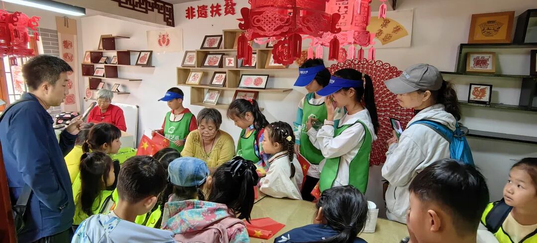 10月8日上午,78名师生怀着对乡村艺术的好奇走进西水夼村,开启沉浸式文化探索之旅。师生们首先来到村内剪纸馆,在非遗传承人卫爱君老师的作品前感受剪纸艺术的细腻灵动,围在村里剪纸老艺人身边,亲手学习折、剪、刻的传统技法,让指尖跃动起非遗温度。