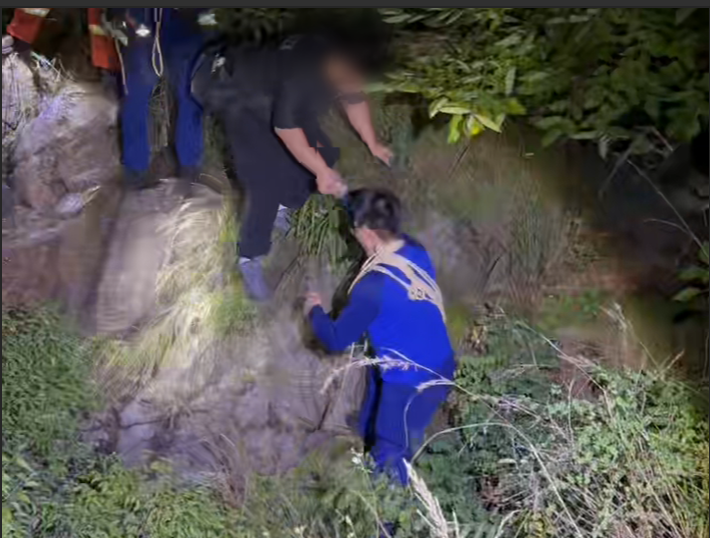 为快速确定被困者位置并规划救援路线,首先由消防员操作无人机,利用机载灯光照明进行高空侦察与精确定位,并通过电话与被困人员保持实时沟通,进一步确认其具体位置与周边环境状况,锁定位置后,无人机转为前导引路模式,借助空中实时画面为救援队伍行进提供清晰指引,救援人员根据已获取的定位信息,携带救援装备、御寒衣物等必要物资进山展开针对性搜救。