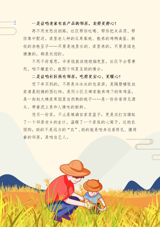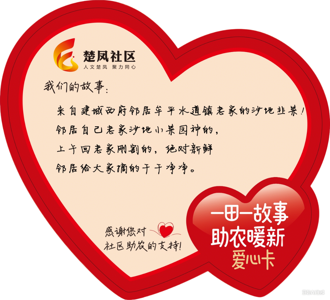 社区志愿者深入田间,倾听农户心声,将耕种点滴制成“一田一故事”爱心卡片,随产品送达千家万户。