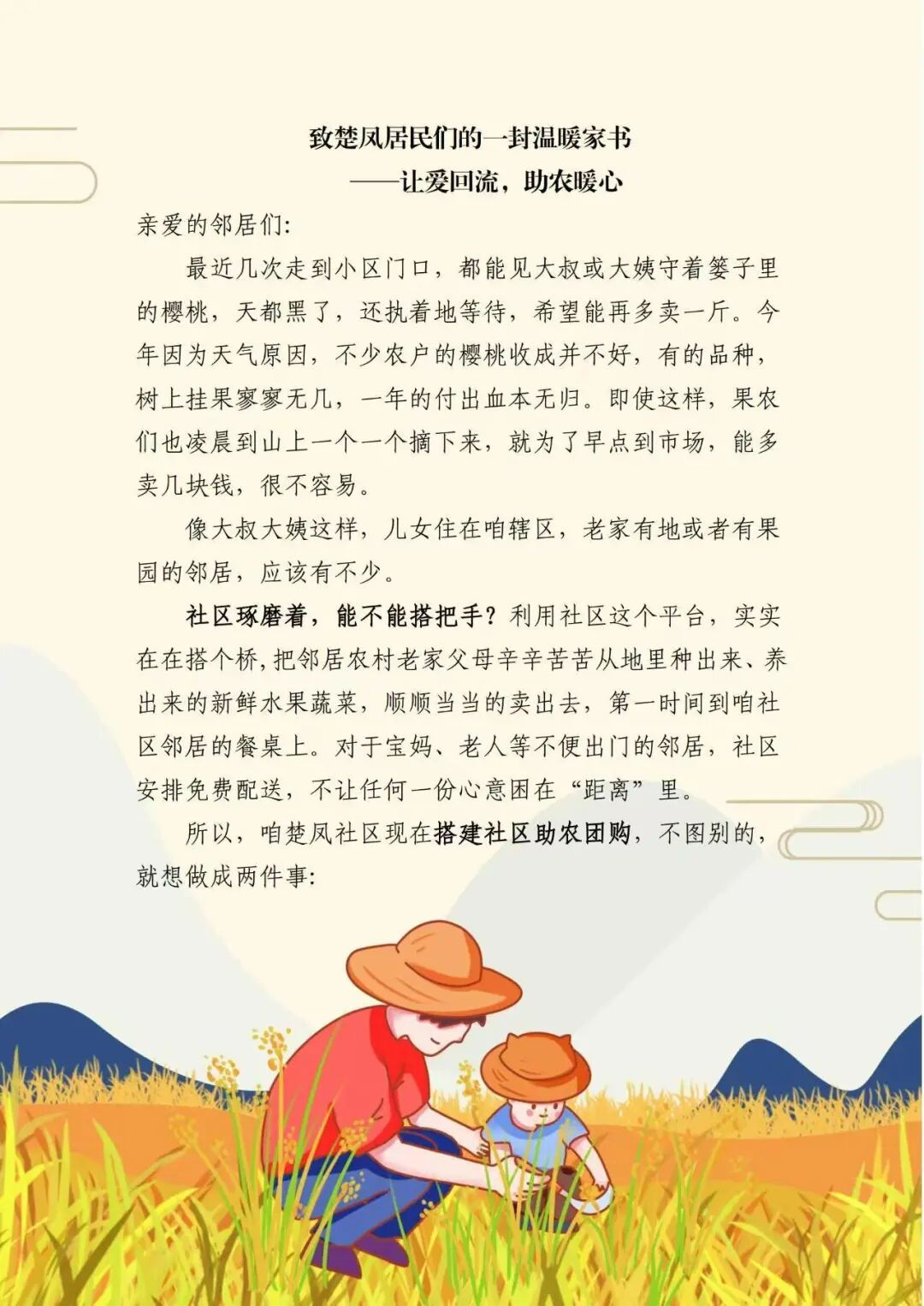 今年2月,楚凤社区发起“暖心助农”行动,已帮助超120户居民,销售自产果蔬5800余斤,真正实现了农户增收、居民安心、社区凝聚的三重价值。