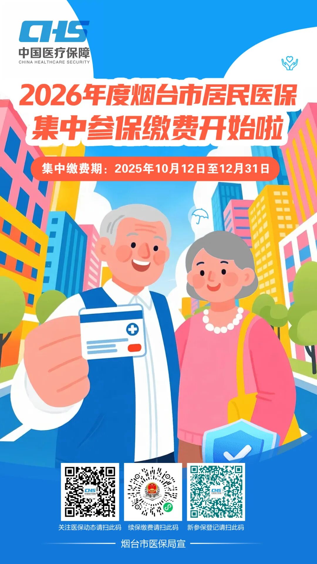 2.新参保居民,可通过“烟台市医疗保障局”微信公众号或到镇街人社所(或党群服务中心)办理参保登记,持居住证参保的居民及其未成年子女,可持公安部门发放的仍在有效期内的居住证到镇街人社所(或党群服务中心)办理参保登记。