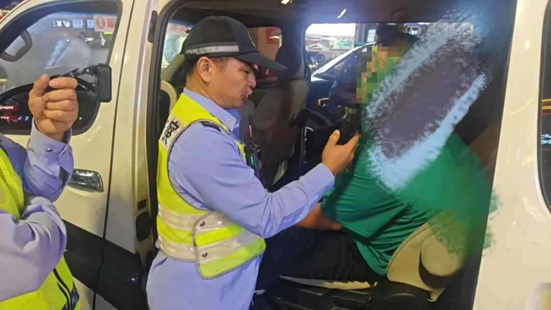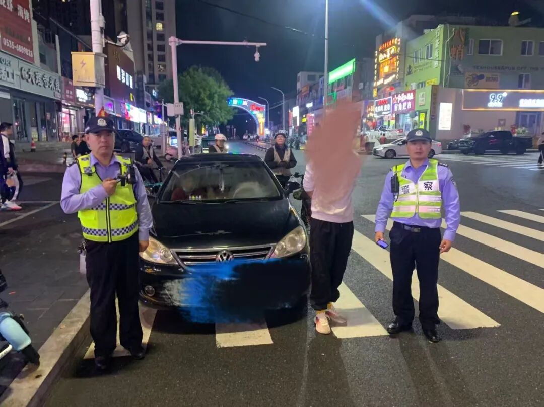 就在前案发生次日22时左右,大队夜查小分队在港城东大街与凤凰西路路口执勤时,凭借敏锐的观察力,发现一辆黑色私家车在临近检查点时突然减速。两名民警迅速反应,果断上前拦截。