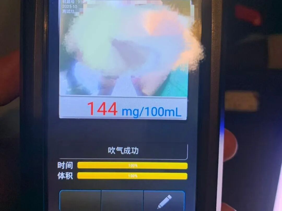 车门刚一打开,一股浓烈的酒气便扑面而来。面对民警询问和酒精测试棒,驾驶员王先生自知无法抵赖,如实承认了当晚19时许与朋友聚会饮酒后驾车的违法事实。经现场呼气式酒精检测,其体内酒精含量高达144mg/100ml,已涉嫌醉酒后驾驶机动车。民警随即依法将其带至医院进行抽血检测固定证据,等待驾驶员的将是法律的严惩。