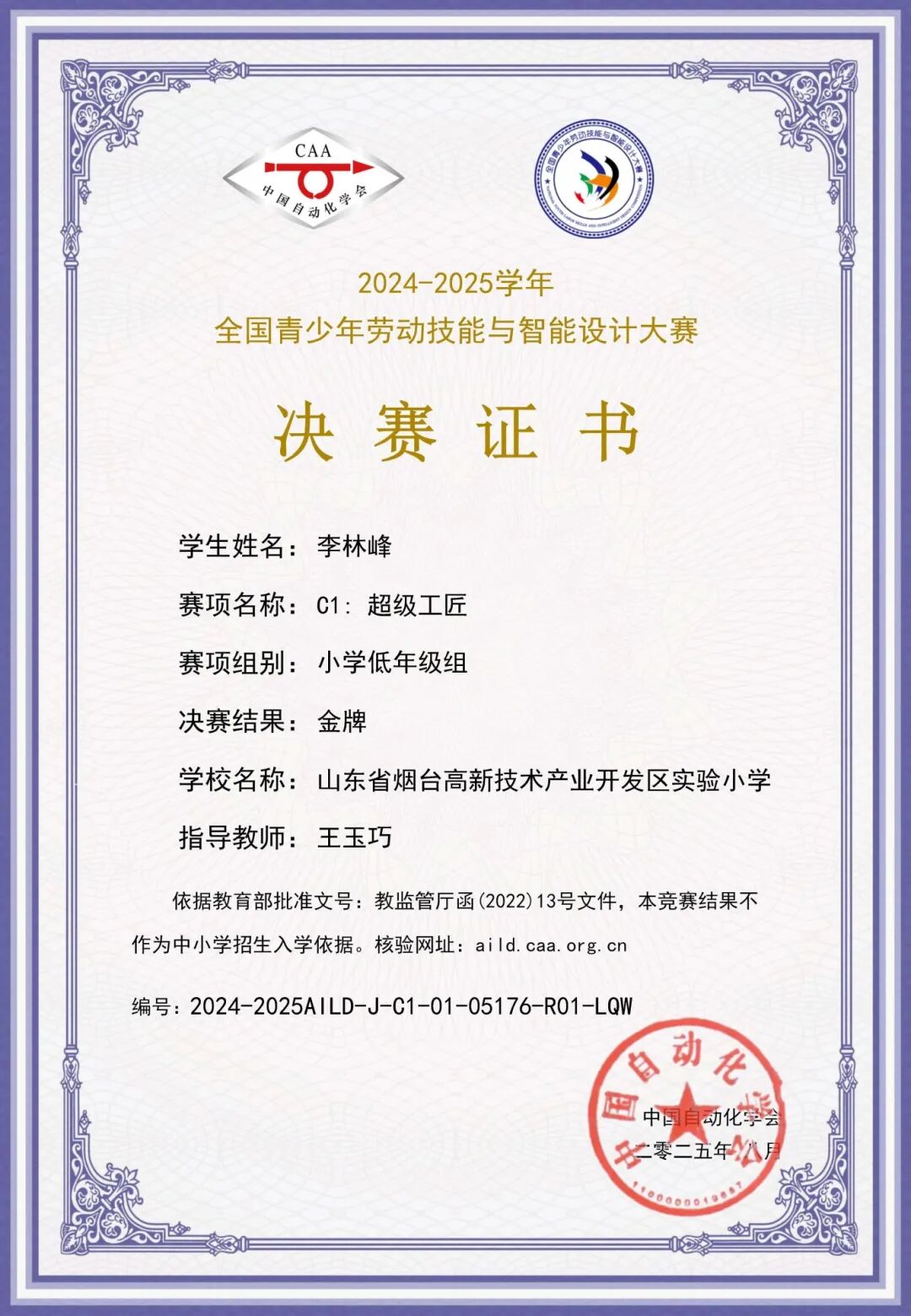 近日,2024-2025学年全国青少年劳动技能与智能设计大赛收官,烟台高新区实验小学代表队在超级工匠比赛中强势发力,斩获国家级金牌!