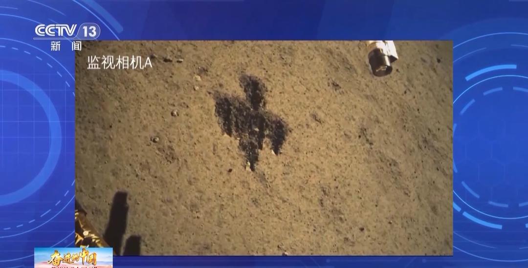 表取采样时,铲子痕迹意外形成一个“中”字形,采样结束后,嫦娥六号展示了一面以玄武岩拉丝工艺特制的五星红旗。