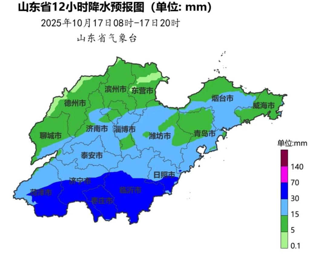 17日白天到夜间,鲁南地区天气阴有中到大雨局部暴雨转多云,其他地区天气阴有小到中雨局部大雨转多云。