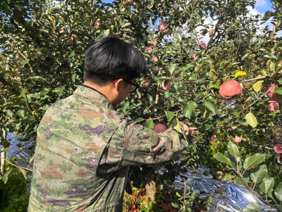 针对摘袋后上色难问题,精准抢抓雨停初晴“黄金窗口”,青年干部到一线,协助果农清理果树周边杂草、合理修剪枝叶;同时邀请果业专家走进果园精准辅导,指导果农加强果园巡查,做好果园排水,降低田间湿度,细致喷洒无公害防虫药剂,守护苹果品质。