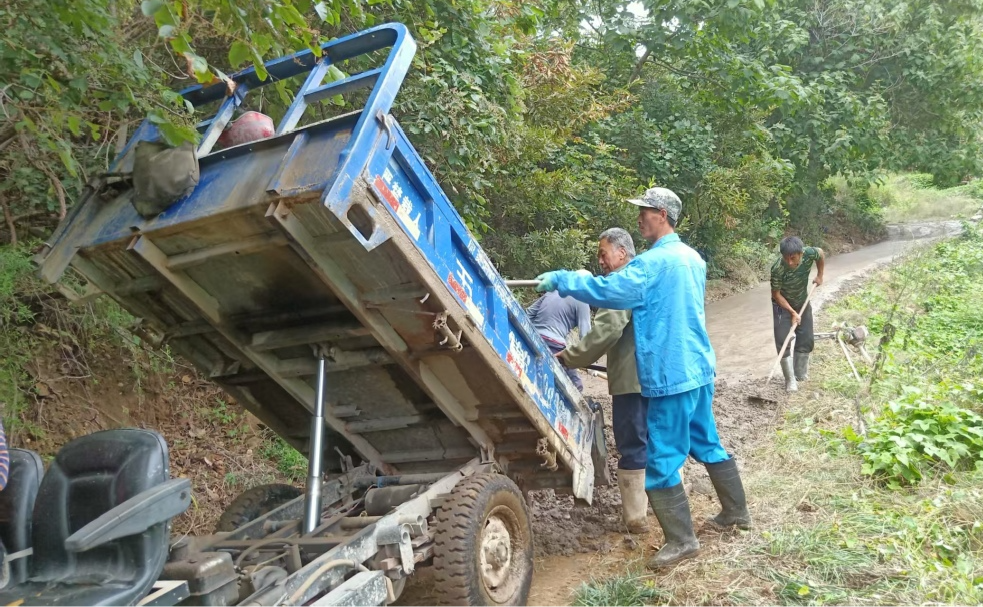 在虎斑石村、蒋家村,村干部与村民集中力量优先抢修关键干道,共调配挖掘机4台、三轮车10余辆,进行清淤、拉运等工作,并通过砂石填平\开挖排水沟、混凝土硬化等一系列措施,迅速打通了关键通道,确保了百姓与运输车辆的顺畅通行。