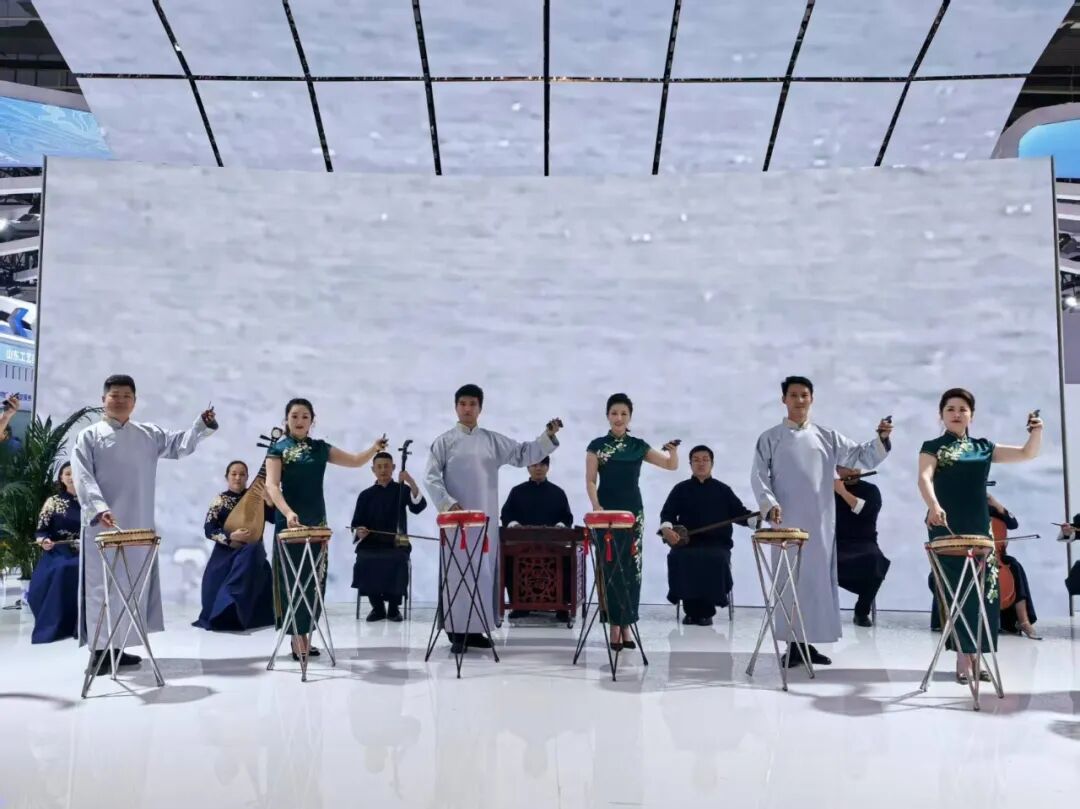 作为首批国家级非物质文化遗产,距今已有260多年历史的胶东大鼓,此次以“巡演”形式登陆版博会1号展馆山东馆。10月16日,由市吕剧团18名演职人员组成的演出团队先后两次登场,带来创新曲目《夸栖霞》。表演中,艺人以三弦、小圆鼓、钢板为伴奏,用“四六八板”的经典音乐结构,将栖霞市的人文特色与自然风光融入说唱中,既保留了“盲人调”的淳朴乡土气息,又通过现代演绎让非遗“活”起来。据了解,《夸栖霞》由鲁东大学艺术学院副院长高峰与市文化馆副馆长王增志联合创作,是栖霞市近年来深化非遗“创造性转化、创新性发展”的典型成果。现场观众纷纷驻足聆听,感受胶东民俗文化的独特韵味。