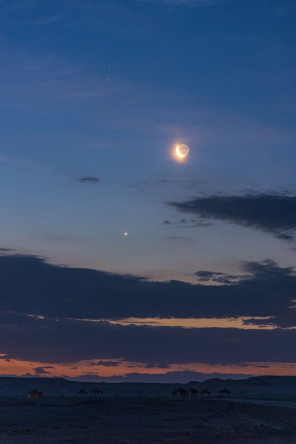 中国天文学会会员、天津市天文学会理事杨婧介绍,在众多的行星伴月中,金星伴月是最容易观测的,因为通常情况下,金星和月球是夜空中最亮的两个天体,且二者相伴时,月相一定是蛾眉月或残月。弯弯的月牙和明亮的金星极为匹配,无论是拍摄还是目视,都非常适宜。