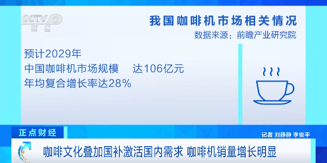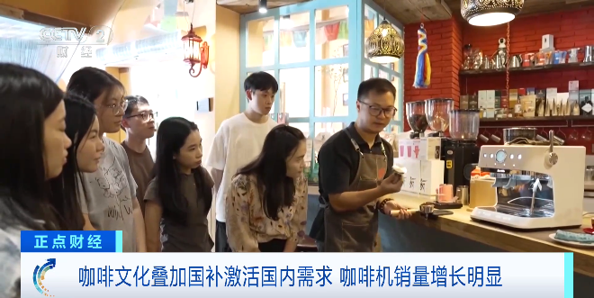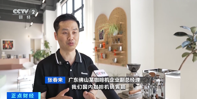 广东佛山某咖啡机企业副总经理 张春来:从今年1月份开始,我们国内咖啡机销售额至少获得50%的增长。我们企业过去是以外贸为主,经过三年的发展,国内市场的销售占比已经达到六到七成。