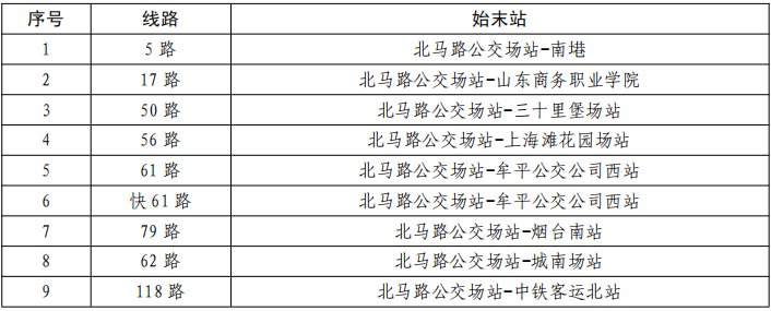 烟台站火车站北广场自十月一日起新增开通两条快线:快51路、快58路。新开五条夜间线路:夜7路、夜8路、夜9路、夜10路、夜11路。10月1日,自火车站北广场发车线路共计18条,北马路公交场站始发线路9条,途经火车站线路13条,具体线路如下所示: