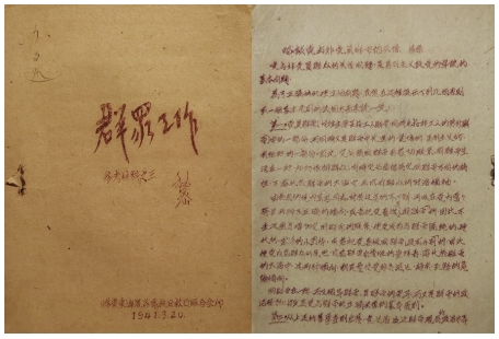 《群众工作》参考材料之三 胶东东海区各界抗日救国联合会印 1941年3月20日