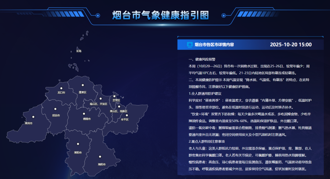 烟台市气象局、市卫生健康委(市疾控局)10月20日15时联合发布健康风险预警以及健康提示。
