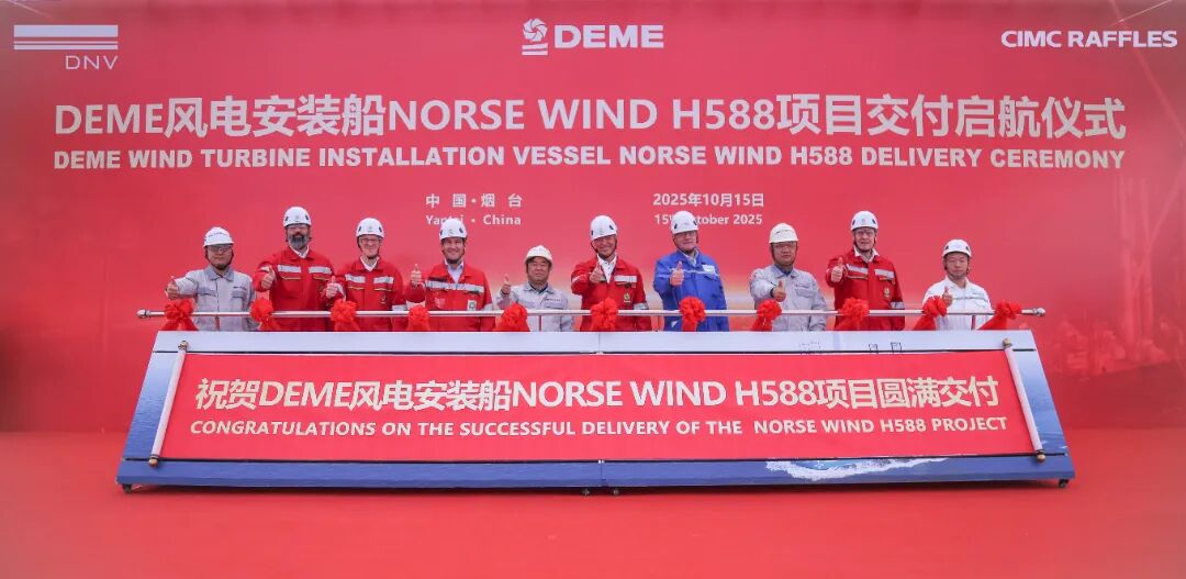 10月15日,“北欧之风”号(Norse Wind风电安装船)在烟台市芝罘区交付,预计本月底,该船将从烟台芝罘湾驶向德国NordseeCluster风场。这艘“烟台造”风电安装船不仅为欧洲带去清洁能源的希望,更扛起了中国海工装备突破全球技术壁垒的大旗。
