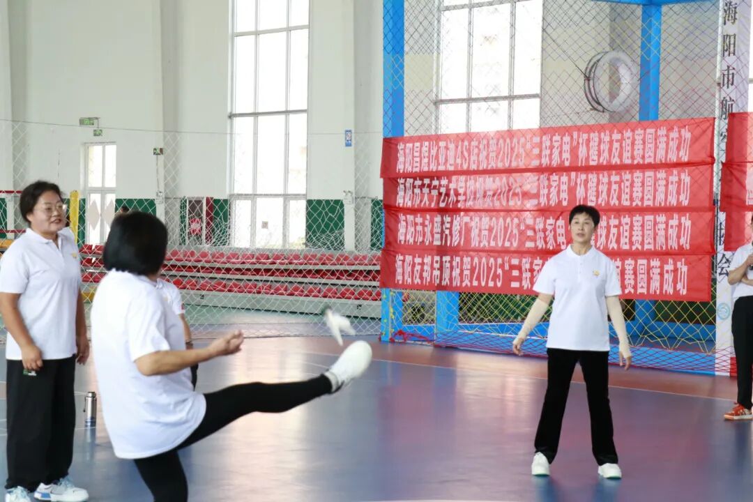 为推动毽球运动在海阳市的普及与发展,为广大毽球爱好者提供一个交流技艺、增进友谊的平台,10月19日,由海阳市体育运动服务中心主办,海阳市毽球运动协会承办的海阳市第十五届全民健身运动会——2025年“三联家电”杯第四届毽球友谊赛在海阳市全民健身综合馆成功举办,赛事吸引了全市近百名毽球爱好者同场竞技。