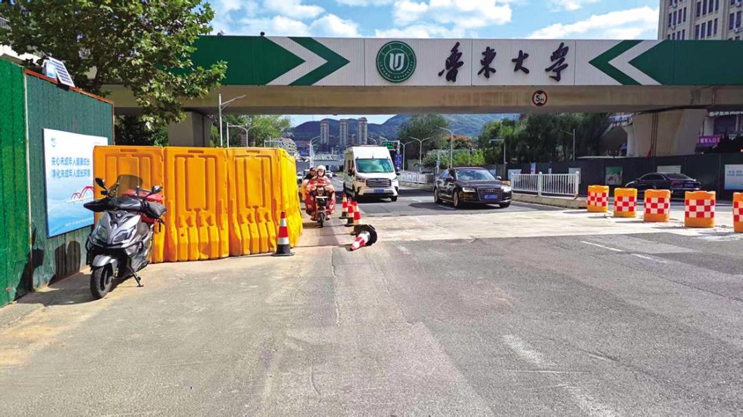 10月21日上午,记者来到红旗西路鲁东大学南门路口过街天桥下实地探访,看到路面上依旧铺设着铁板,用于遮挡施工现场的淤泥,施工方还在铁板旁预留了一米多宽的骑车小通道。不少骑电动车的“快递小哥”及学生从这条小通道经过,车轮碾过铁板时会发出“哐当哐当”的响声。记者看到,一些“快递小哥”经过时能放慢速度小心翼翼通行,但仍有部分人因着急赶路,未充分留意铁板情况,快速骑行通过时车身略有晃动,稍有不慎便可能连人带车摔倒,存在安全隐患。