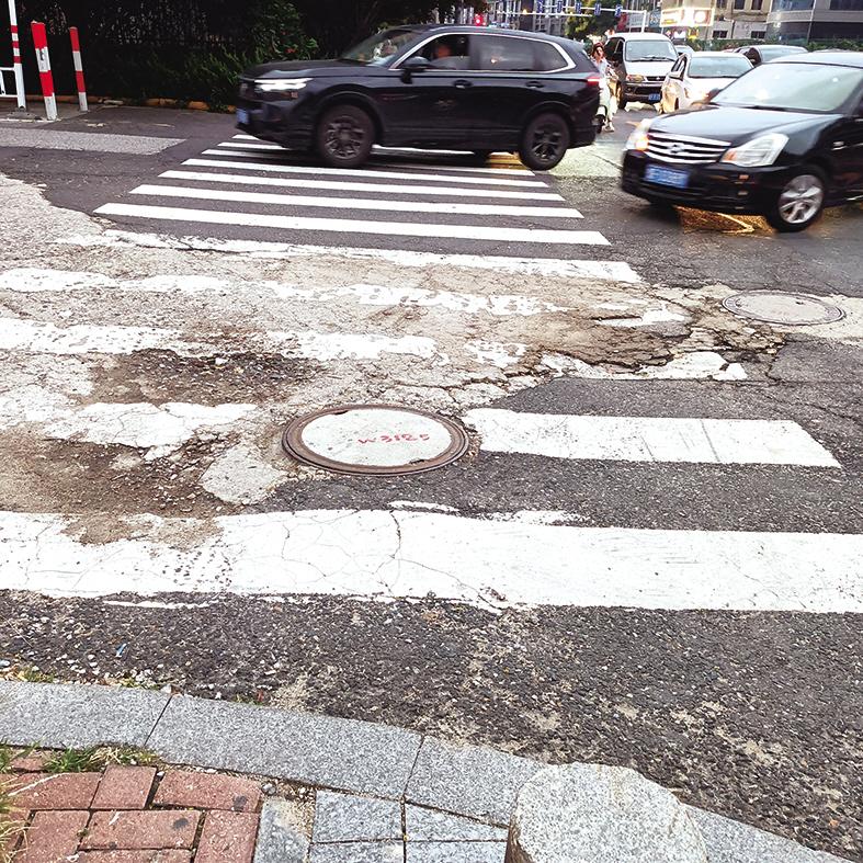 “这个路口的斑马线破损很长时间了,凹凸不平像‘搓衣板’一样,一直没有修复。”市民周先生说,“这周围有烟台火车站,烟台大悦城商圈、烟台港国际客运站、芝罘湾广场景区等,通行的市民和游客特别多,破损的斑马线影响城市形象,还给行人带来安全隐患,希望相关部门尽快修复。”