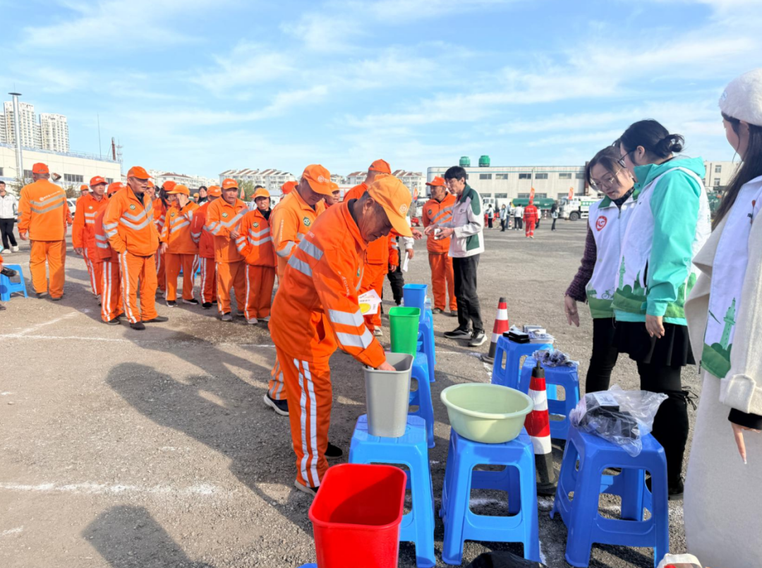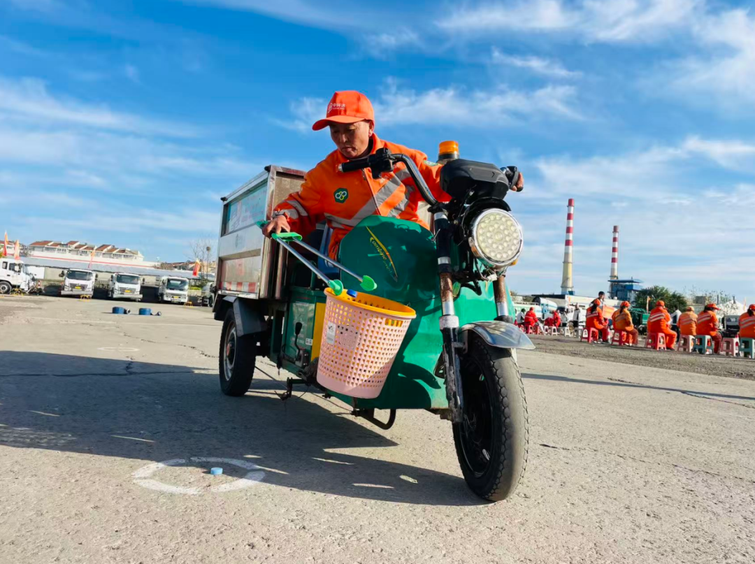 在道路保洁洗扫、洒水车冲刷竞赛区,参赛环卫工人展现出了高超的作业技能,他们操控着各种环卫车辆,精准完成高压冲洗、洗扫作业等系列动作,充分展现了专业化、精细化、规范化的作业水准。三轮车和人工捡拾垃圾技能竞赛同样精彩纷呈,环卫工人们熟练完成各类障碍穿越和垃圾捡拾,展现出精湛的工作水平。“垃圾分类神投手”现场整齐摆放着四分类垃圾桶,选手手持印有不同生活垃圾的卡片,在短时间内快速判断垃圾类别,精准投入对应桶中。零失误的选手均可获得垃圾分类主题手机支架、钥匙扣等定制纪念品,用比赛的方式庆祝属于环卫工人自己的节日。