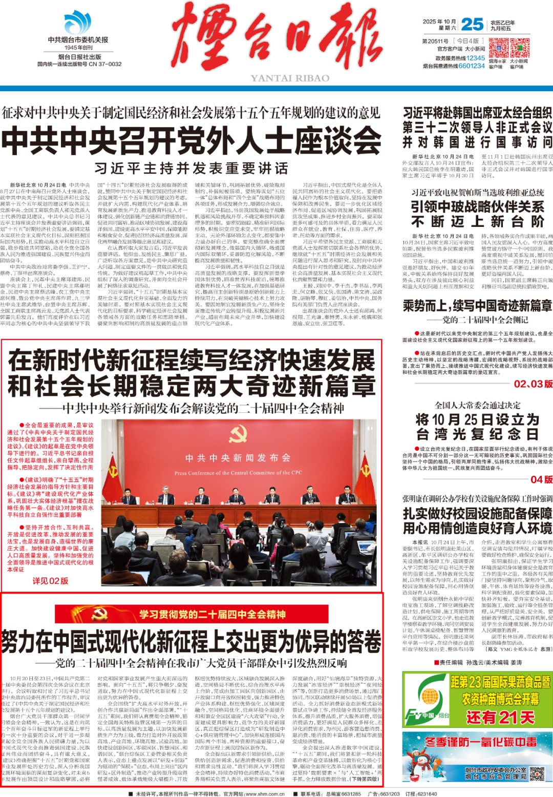 烟台广大党员干部群众第一时间学习领会全会精神,一致认为,这是在向第二个百年奋斗目标进军的新征程上举行的一次十分重要的会议,对于进一步凝聚起全党全国各族人民磅礴力量,为以中国式现代化全面推进强国建设、民族复兴伟业而团结奋斗,具有重大意义。《建议》准确把握“十五五”时期党和国家事业发展所处历史方位,深入分析我国发展环境面临的深刻复杂变化,对未来5年发展作出顶层设计和战略擘画,必将对党和国家事业发展产生重大而深远的影响。面向“十五五”,将只争朝夕、奋发进取,努力在中国式现代化新征程上交出更为优异的答卷。