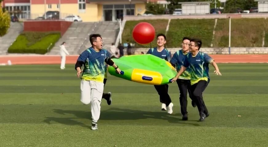 看台上,学生家长王女士看得津津有味:“看到这么多老师和学生一起运动,整个场面特别有感染力!这不仅能锻炼身体,感觉整个教育氛围都活起来了。”