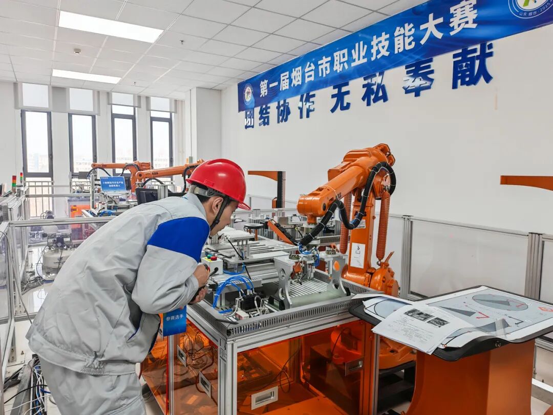 在烟台职业学院主赛场,机电一体化、工业设计技术、机器人系统集成、网络系统管理、网络安全、花艺、新能源汽车维修等19个赛项的队伍将展开为期3天的激烈角逐。参赛选手们在钻研中突破、在竞技中成长,以实际行动为烟台市建设新时代社会主义现代化强市贡献技能人才的智慧和力量。