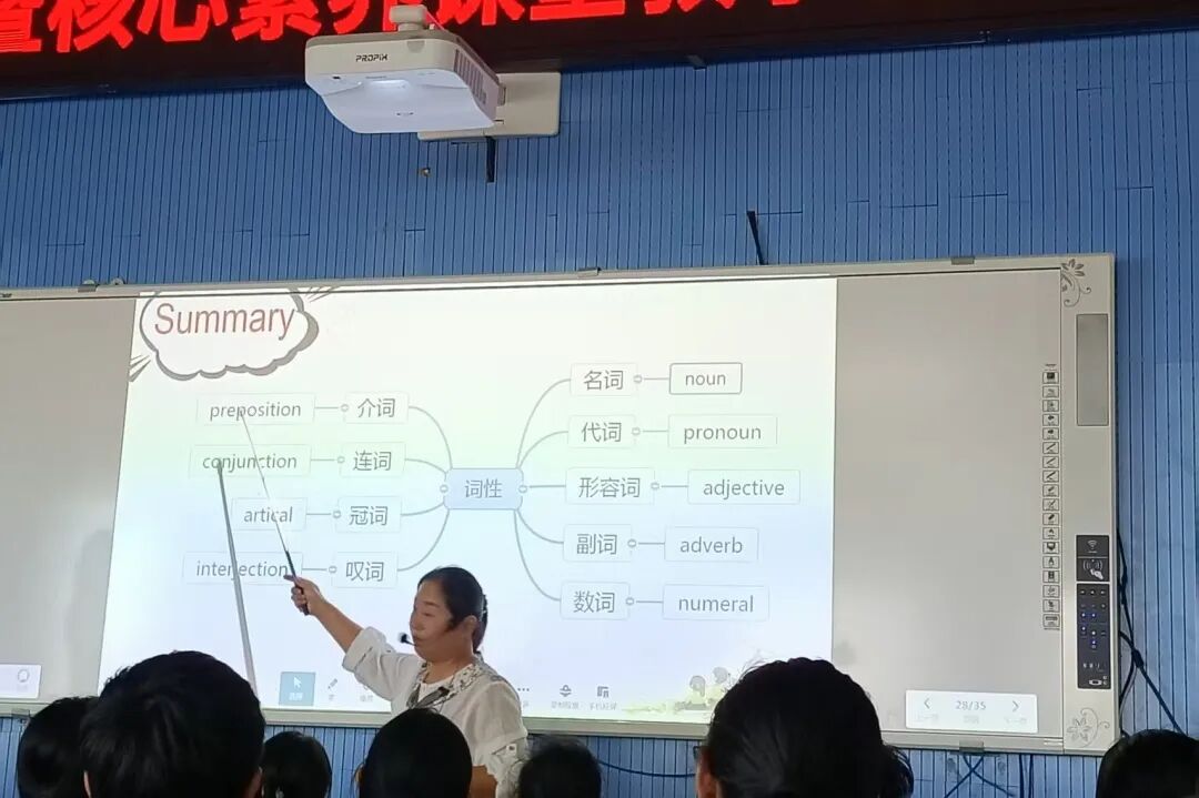 泉山初级中学路秀娟老师在庙后吕家学校执教示范课《英语十大词性的探秘》,以“分类解析构建语言骨架”为切入点,引导学生系统梳理英语十大词性的定义、功能及用法,将语法知识与语言运用场景相结合,展现了英语教学在夯实学生语言基础与提升综合运用能力方面的扎实路径。