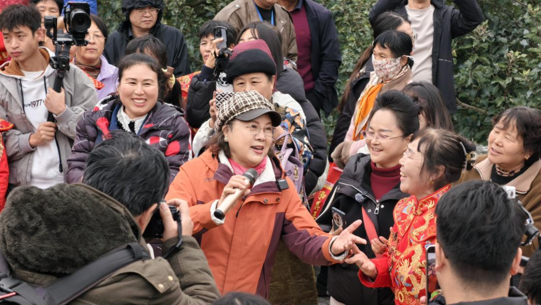 著名艺术家李元华在活动现场与村民一起合唱熟悉的旋律△