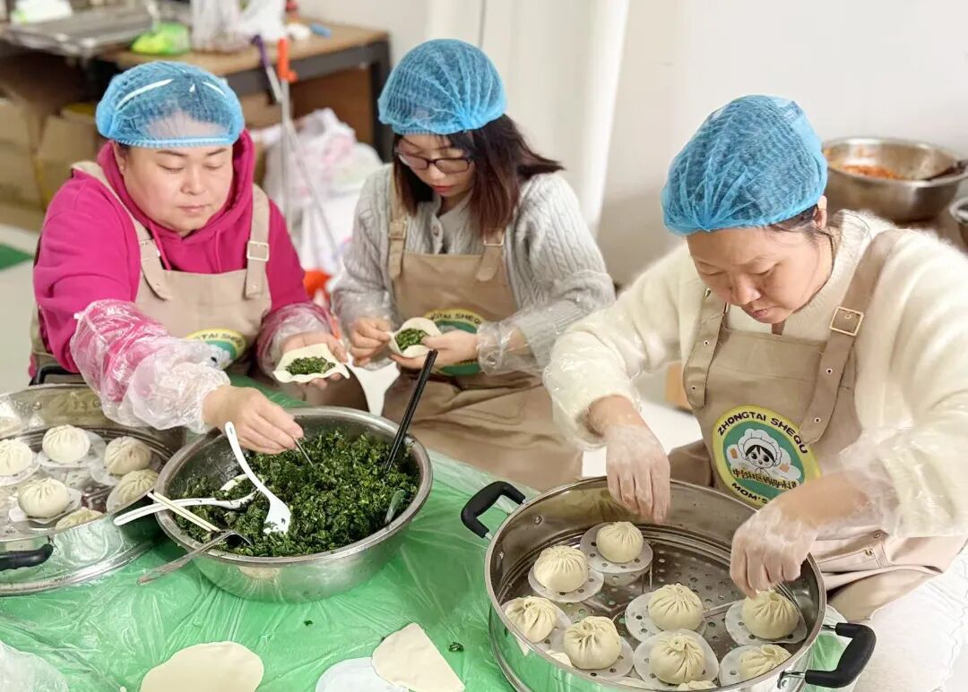 小厨房里,揉面、擀皮、包馅、捏褶,宝妈们动作娴熟。她们在协作中交流技艺,也拓展着自己的社交圈。这里不仅飘散着面食的香气,更成为宝妈们链接社区、创造收入的新起点。运营以来,小厨房每餐服务30余人,高峰时达60份,在为邻里提供便利的同时,也为参与制作的宝妈带来了实实在在的经济回报。
