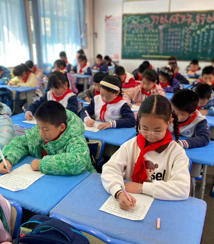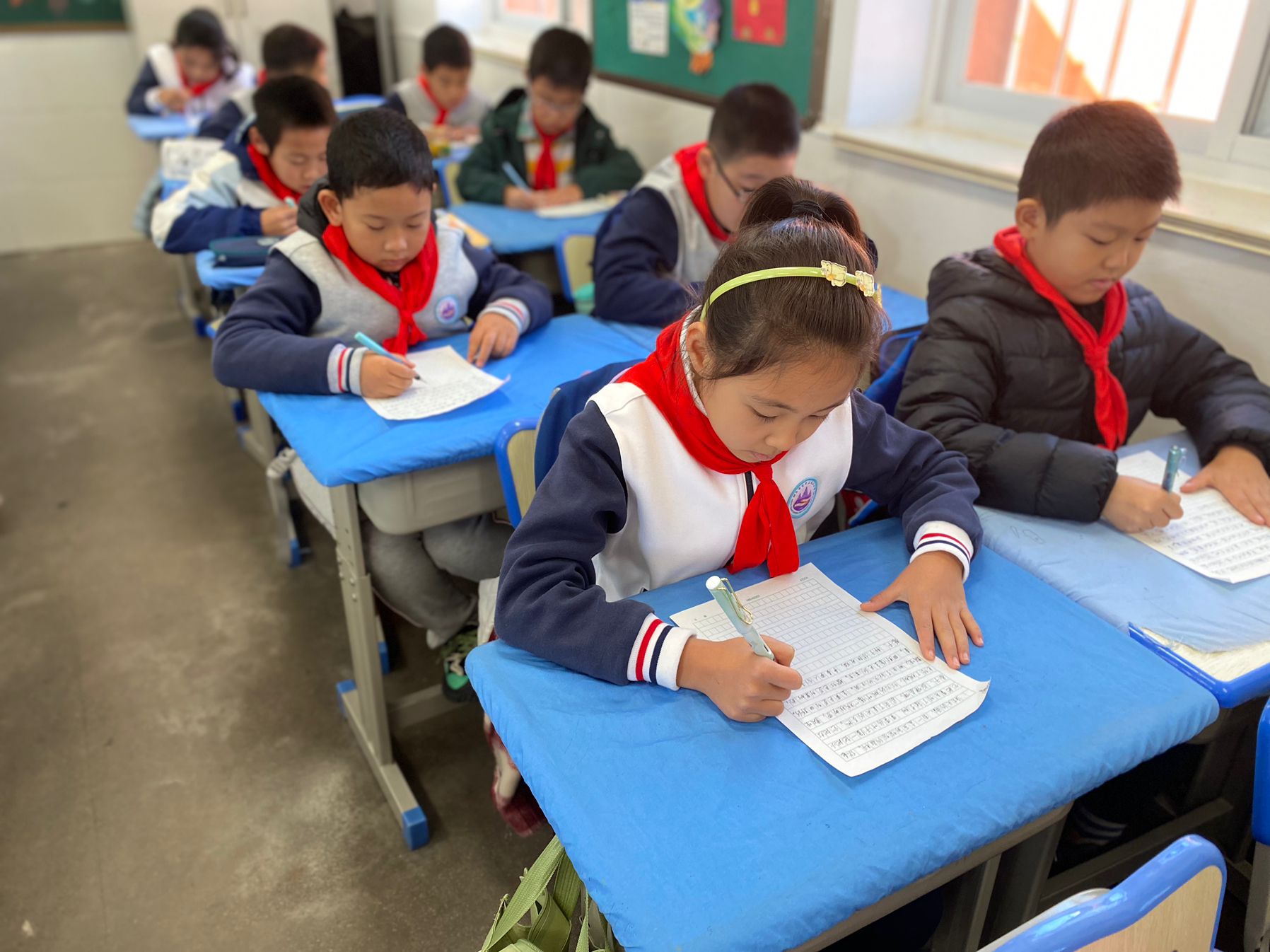 比赛现场一片宁静肃穆,同学们严格遵循书写规范:一年级用拼音田字格铅笔作答,二至五年级分别以田字格、方格纸搭配对应笔具书写 。端坐于课桌前的学子们,屏息凝神、全神贯注,小小的身姿里蕴藏着对汉字文化的无限敬畏 。比赛开始,只闻笔尖在纸上沙沙作响,那声音宛如春蚕食叶,悦耳动人 。全场学生皆坐姿端正、执笔标准,专注构思间一笔一划尽显认真,起笔、行笔、收笔有模有样,从横平竖直的规矩中可见严谨态度,从撇捺飞扬的笔锋里能窥灵动才思 。最终呈现的作品字迹工整、卷面整洁,无涂抹褶皱,一个个工整娟秀的汉字在纸上翩然起舞,既展现了扎实的书写功底,更将汉字的形韵之美深深烙印在心田 。