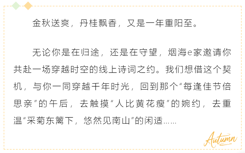 3.本次活动在烟海e家APP进行,请在应用商城下载“烟海e家”后搜索“山海情长 诗颂重阳”参与活动。