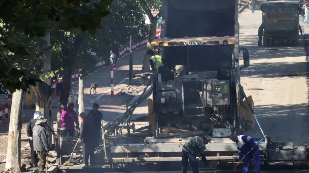 10月27日,记者在工商大街道路改造项目现场看到,摊铺机缓缓前行将沥青均匀铺设在路面上,压路机紧随其后反复碾压,确保道路平整。