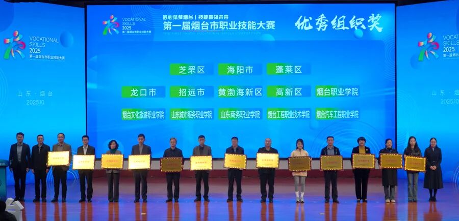 10月26日下午,由烟台市人力资源和社会保障局、烟台市教育局、烟台市总工会、共青团烟台市委、烟台高新区管委主办的第一届烟台市职业技能大赛圆满落幕。本次大赛以“匠心筑梦烟台 技能赢领未来”为主题,汇聚烟台各区市及高校的26支代表队共680余名选手,在机器人系统集成、网络安全、新能源汽车维修等35个赛项中展开激烈角逐,烟台职业学院参赛师生共斩获37枚奖牌,学校获最佳组织奖。