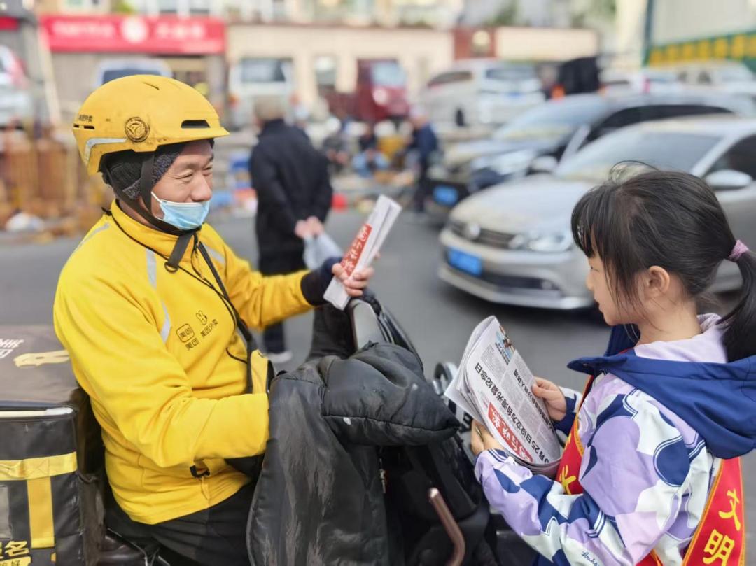 “文明相伴·爱满重阳”。10月25日清晨,近百名微光小志愿者义卖报纸筹善款,为困难群众送去节日温暖与社会关怀。 记者 金海善 摄