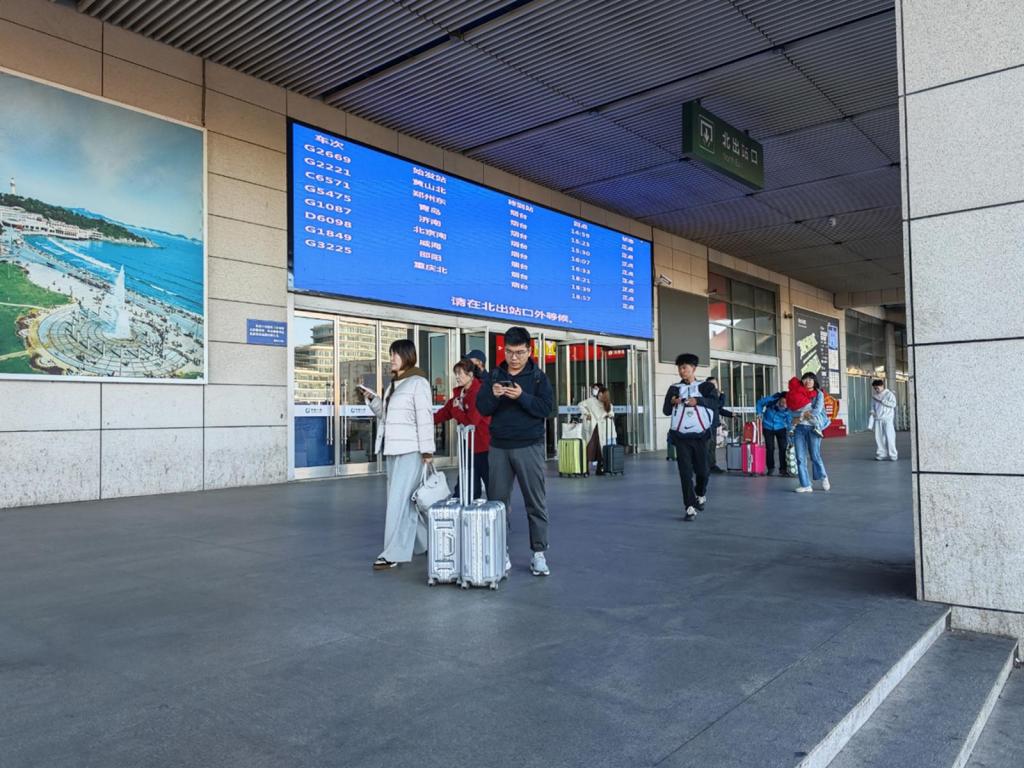 “今天共有78班列车到达南站,预估全天客流7000余人次,和平常工作日客流基本相当。我们在客流较多的几个时段加派人手,及时疏运现场客流,维护待租区秩序。”烟台市交通运输执法监察支队城铁南站管理所工作人员王振辉说。27日晚11点40分最后一班列车到站后,完成疏运工作的王振辉,就将和同事们奔赴其他场站“增援”。